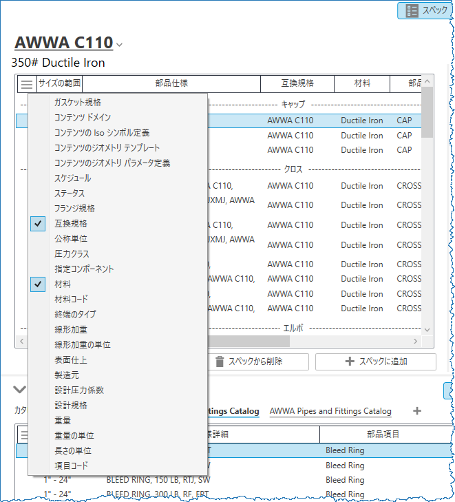スペック シートでは、スペック シートの左上にある列カスタマイズ ボタンをクリックして、列をカスタマイズすることができます。