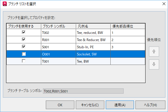 AutoCAD Plant 3D toolsetで配管のルートとブランチを決定する際に使用するブランチ コンポーネントの優先順位を設定します。