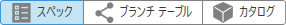 スペック エディタの 3 つのタブで、スペックとカタログを切り替えることができます。スペック ファイルを修正するには、[スペック]タブと[ブランチ テーブル]タブを使用します。カタログを修正するには、[カタログ]タブを使用します。