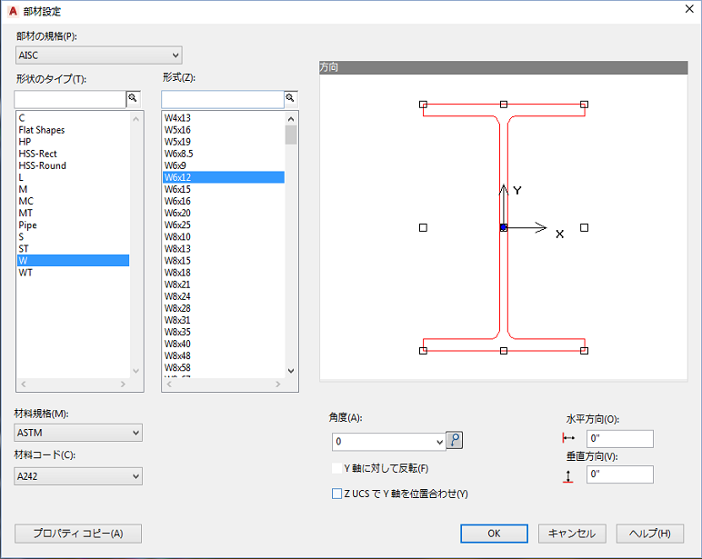 部材の既定の規格を設定します。