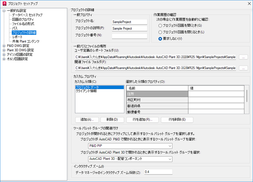 コンポーネントの記号、タグ付けルール、注釈プロパティ、画層、色など、プロジェクトや作図の基本設定を設定します。