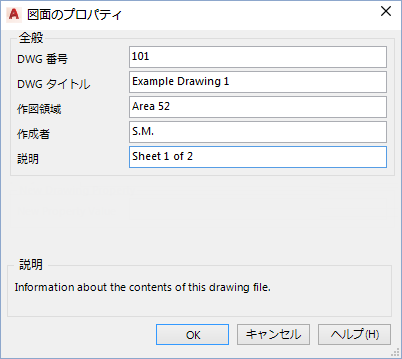 - [説明]に、説明を入力します(例: この図面が属しているプロジェクト )。