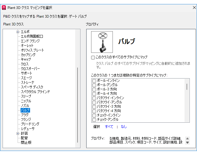 [Plant 3D クラス マッピングを選択]ダイアログ ボックスで、次の操作を行います。