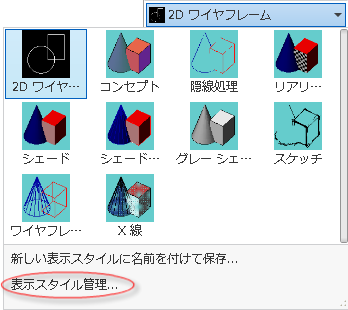 [表示スタイル管理]パレットで、[図面内で利用可能な表示スタイル]