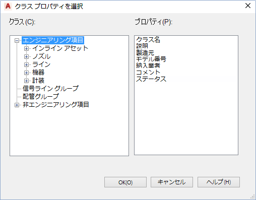 選択したクラスに基づいて、プロパティのリストが表示されます。