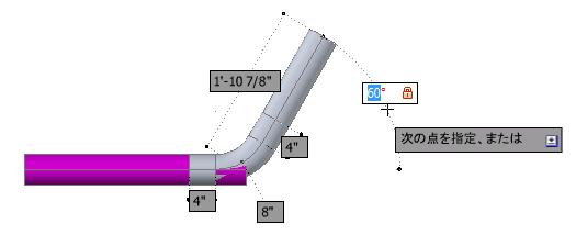 ベンド管では、ルート作成中にダイナミック入力がサポートされます。