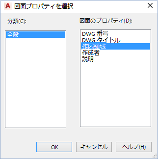 図面のカテゴリを設定します。タグを付けるプロパティを選択します。
