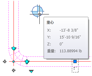 モデルに重心スナップショット記号を追加することができます。重心スナップショット記号にカーソルを合わせると、重心の座標と重量が、ロールオーバー ツールチップに表示されます。