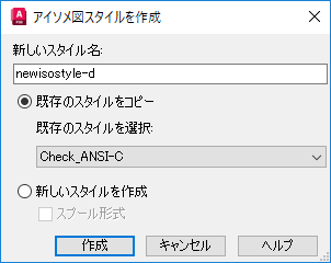 既存のアイソメ図スタイルに基づいて、新しいアイソメ図スタイル名およびフォルダを作成します。