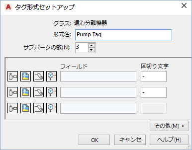 タグ形式のサブパーツの数を選択します。上下の矢印をクリックしてサブパーツの数を増加または減少します。
