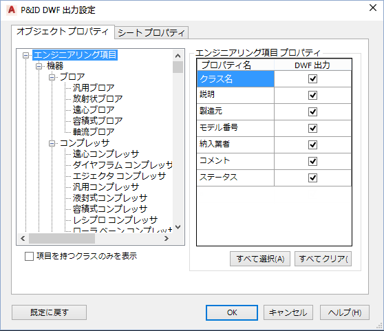 既定では、[エンジニアリング項目]ツリーと[非エンジニアリング項目]ツリーのすべてのプロパティが含まれます。