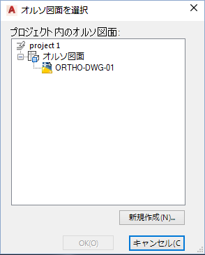 プロジェクト内にある使用可能なオルソ図面をリストします。
