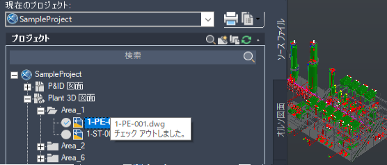 ワークスペース フォルダ内のプロジェクト ファイルは、最初は読み取り専用です。[プロジェクト マネージャ]により、作業時にファイルをチェック アウトするよう求められます。変更を完了すると、プロジェクト ファイルをチェック インすることができます。また、Vault に同期することにより、作業中のファイルをチェック インせずに共有することもできます。