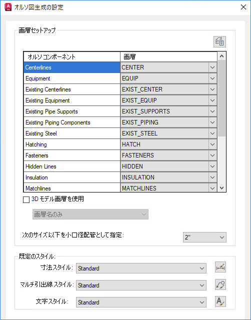 - 画層編成目的に対して小口径として扱われる配管の、丁度または未満のサイズを指定します。