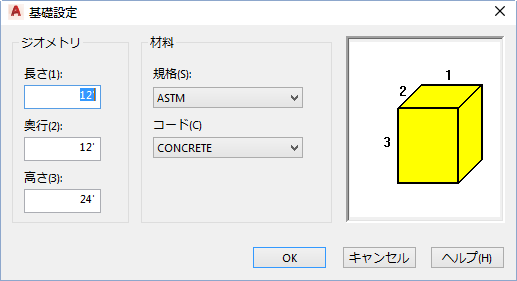 [基礎設定]ダイアログ ボックスで、新しい基礎に使用する値を入力します。[OK]をクリックします。