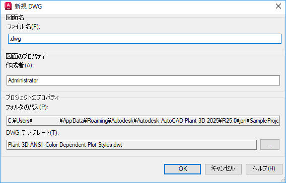 [新規 DWG]ダイアログ ボックスで、次の操作を行います。
