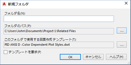 このフォルダに関連付けられているすべての新しい図面ファイルについてフォルダの場所を指定します。