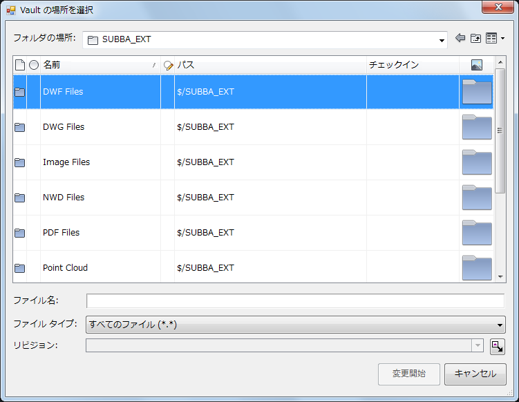 Vault から直接外部参照をアタッチすることができます。AutoCAD DWG とその他のファイル形式(PDF 、NWD など)がサポートされます。