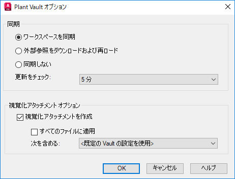 同期および視覚化アタッチメントに関する Vault の設定を指定します。