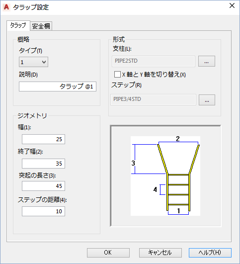 [安全柵]タブ([タラップを編集]ダイアログ ボックス)