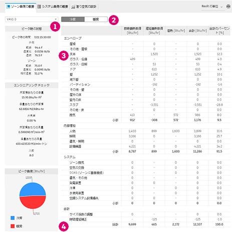 HVAC 設備のサイズ変更をガイドするために、負荷と湿り空気の詳細情報が必要な場合は、負荷レポートを生成します。