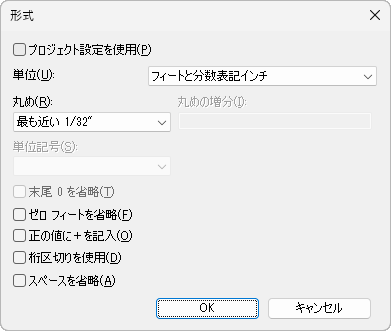 既定では、[プロジェクト設定を使用]オプションはオンになっています。これは、プロジェクトの[単位]設定に従って数値が表示されることを意味しています。