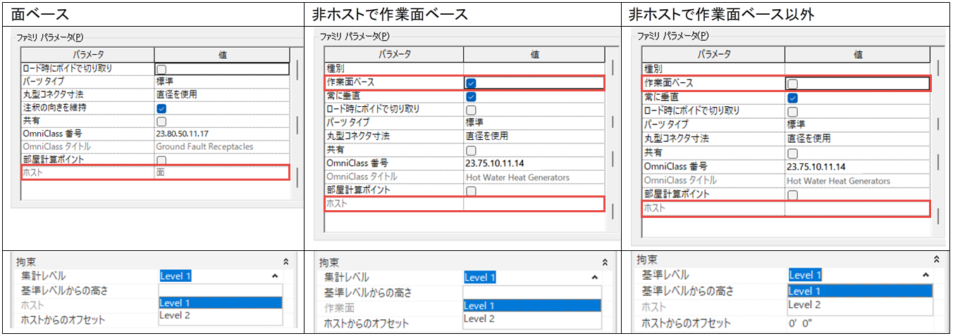 非ホスト要素は、作業面ベース、または非作業面ベースとして定義できます。