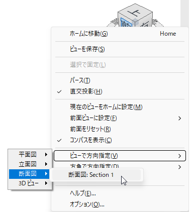 ViewCube を使用して、3D ビューをモデル内の任意の平面図、立面図、断面図、または 3D ビューで方向付けることができます。