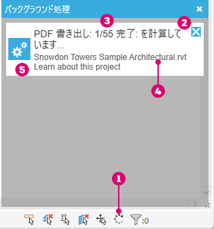 モデルでの作業を続行できるように、バックグラウンド処理として PDF 書き出しを実行します。