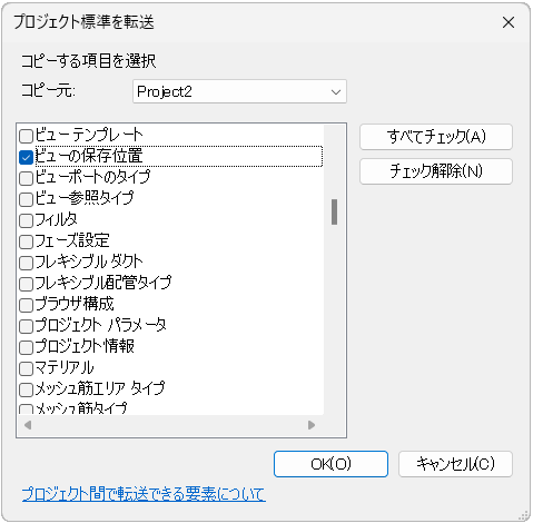 [保存位置]は、[プロジェクト標準を転送] [ビューの保存位置]を使用して、モデル間で転送できます。