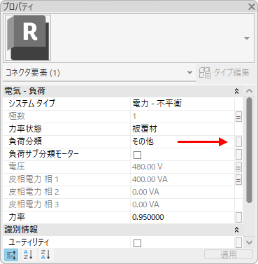 プロパティ パレットで、[負荷分類]の値の右にあるボタンをクリックします。