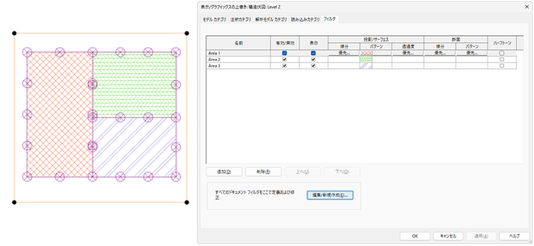 フィルタを使用して、平面図ビューで各面荷重の境界を荷重パラメータに基づいて識別します。