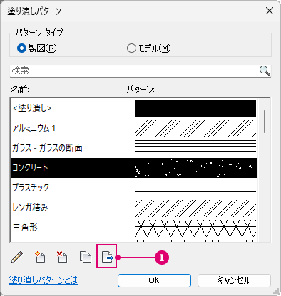 [管理]タブから[塗り潰しパターン]ダイアログにアクセスし、1 つまたは複数のパターンを選択して PAT ファイルに書き出します