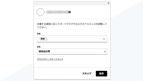 [プロファイル]ダイアログは、インストール後 Revit を初めて起動したときに表示されます。Revit を使用する専門分野や役職に関する質問が表示されます。