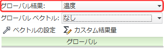 1. [グローバル]状況依存パネルの[グローバル結果]メニューから[温度]を選択して、表示対象の結果を[温度]に変更します。