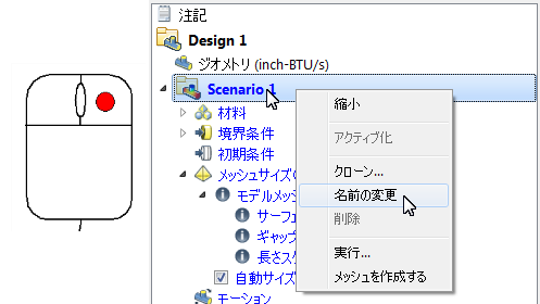 5. デザイン スタディ バーで、[シナリオ 1]を右クリックし、[名前の変更]をクリックします。