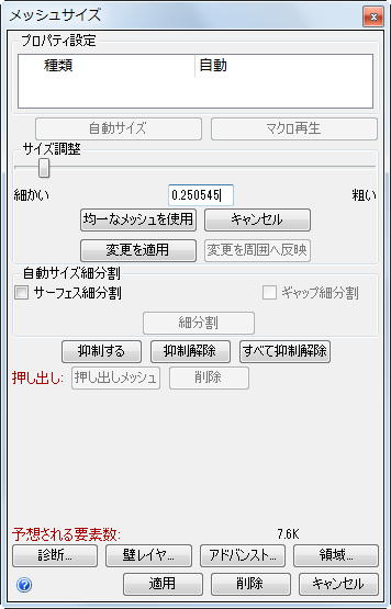 メッシュ サイズを変更するには、次のいずれかを実行します。