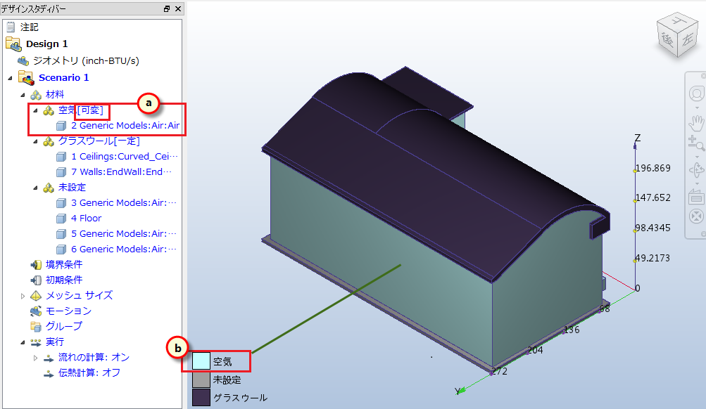 9. 空気材料が正しく割り当てられていることを確認するには、デザイン スタディ バーと部品の色付けを確認します。