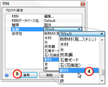 4. [名前]メニューから[軟材]を選択します。