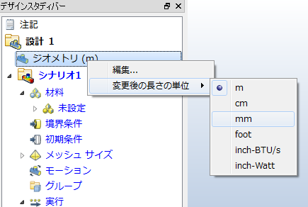 他の CAD ツールまたはデスクトップで起動する場合、デザイン スタディ バーのジオメトリ ブランチを右クリックして単位をmmに設定します。