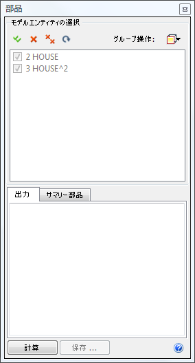 モデルエンティティ選択領域で、各部品の横にあるボックスをチェックします。