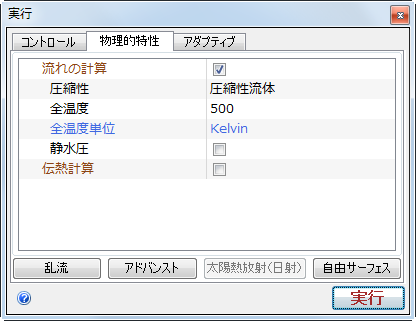 実行ダイアログで、解析制御をクリックし、対流項をクリックします。対流項オプションダイアログで、ADV2を選択します。OKをクリックし、解析制御ダイアログでOKをクリックします。
