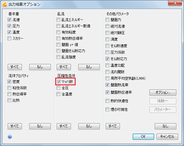 マッハ数 **を選択してマッハ数の出力を有効にします。OK**をクリックします。