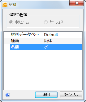 [材料]クイック編集ダイアログで、[種類] = [流体]を指定します。