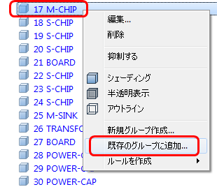 リスト上にある別の[M-CHIP]部品を右クリックして、[既存のグループに追加]を選択します。