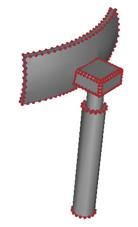 これらのケースのメッシュ分割は自動サイズをクリックして自動的に計算したものです。モデルエッジ上のドット(メッシュシード)は節点が作成される場所を示しています。選択モードを変更しても、各ドットの位置および間隔は変化しません。