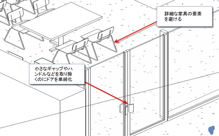 - 家具等の小さいフィーチャーは削除するか簡素化します。