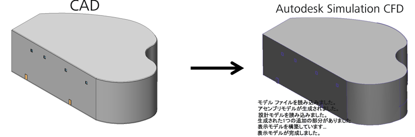 Autodesk® CFD は CAD からモデルが転送されると、完全に閉じたキャビティを内部ボリュームに自動的に置き換えます。