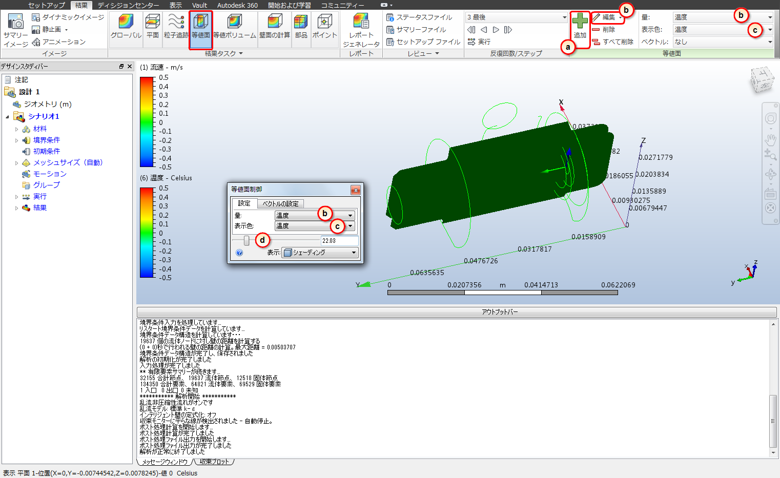 d. 等値面の値を変更するには、[等値面制御]ダイアログのスライダをドラッグします。