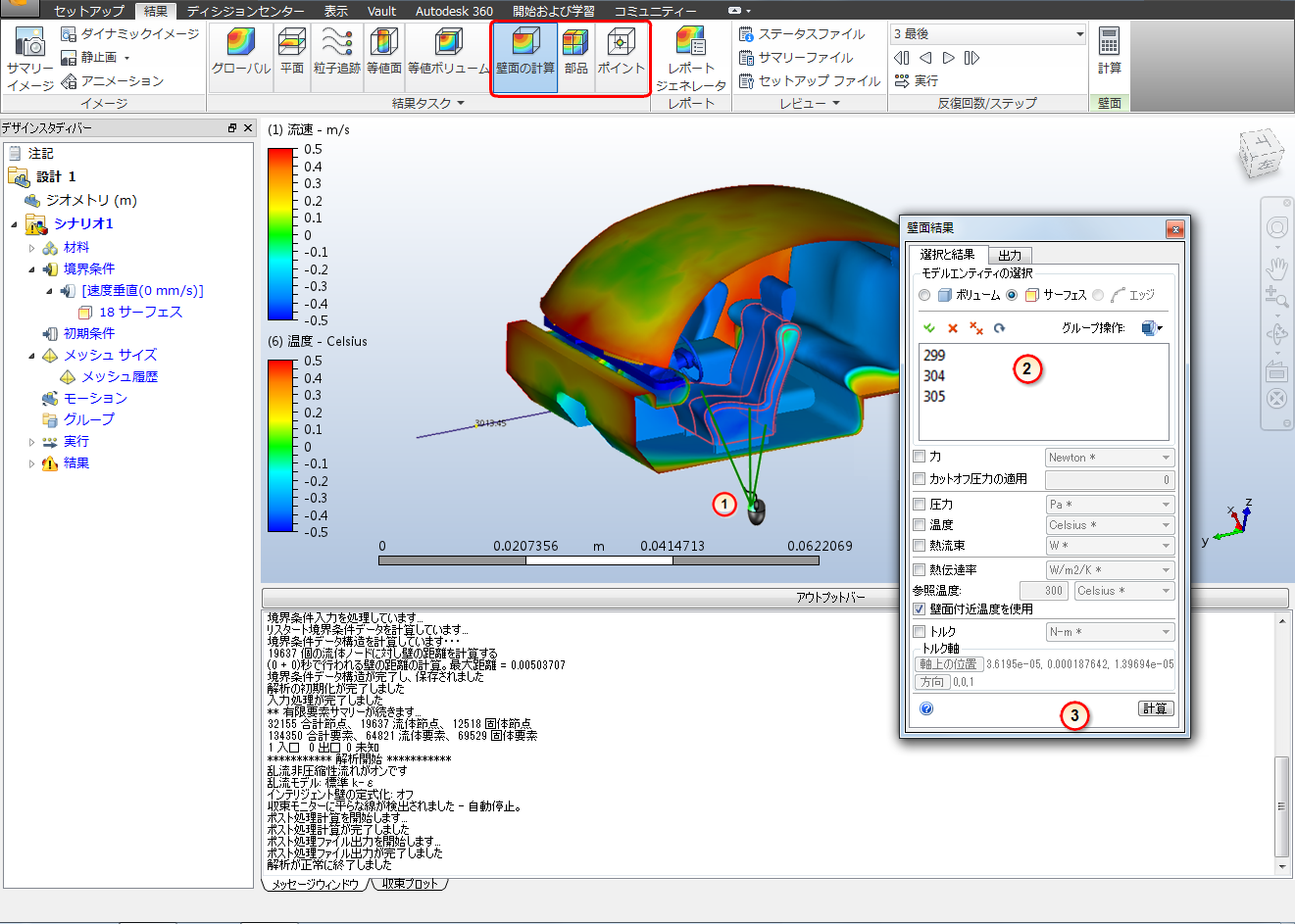 データを可視化するのに加えて、壁面の計算、部品、およびポイントのツールを使用して特定の値を抽出することができます。